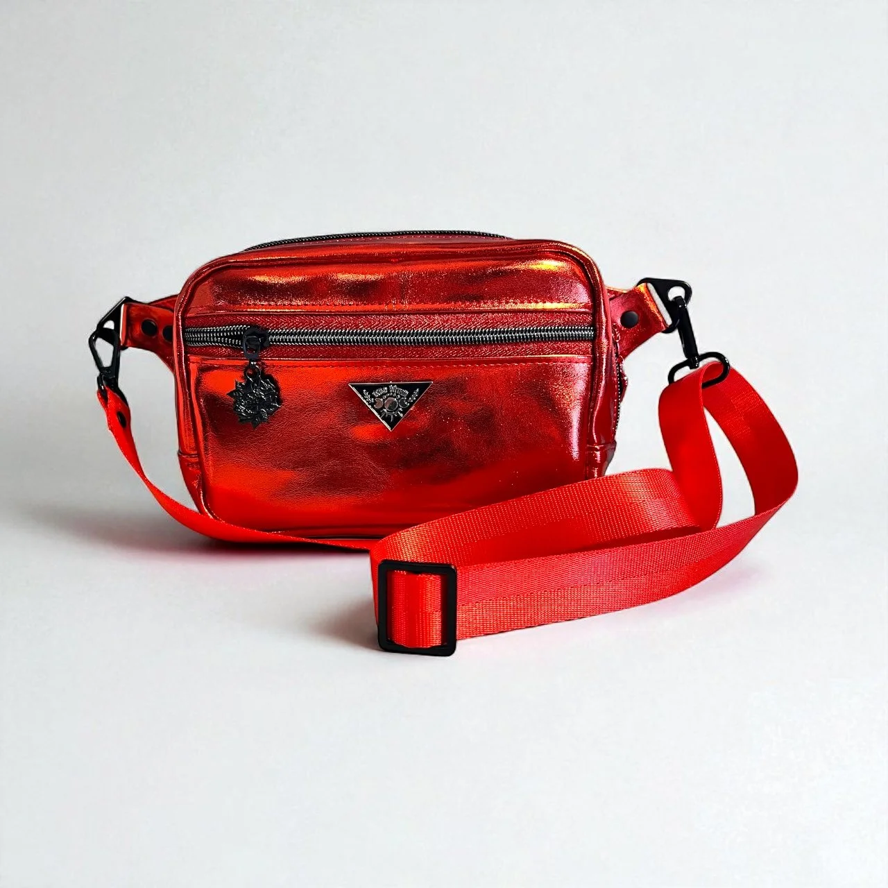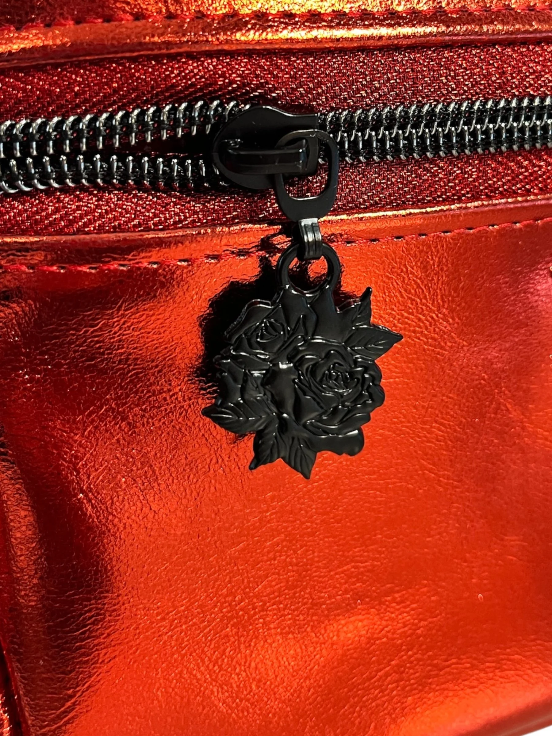 Finished bag is roughly 7½” wide by 5½”h by 2” deep. (D ring to d ring it is 12½ wide.). This bag has 1 main compartment  and one exterior zippered pocket.